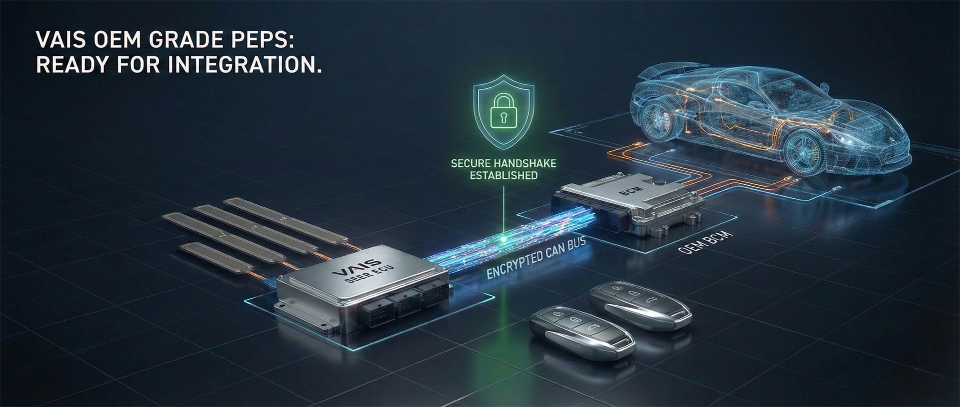 VAIS SEER offers a production-ready Passive Entry Passive Start (PEPS) platform. We engineered this system specifically for small-to-mid volume OEMs and specialized fleets. Consequently, manufacturers can implement sophisticated authentication immediately. Therefore, this eliminates the significant resource burden of developing a proprietary solution.